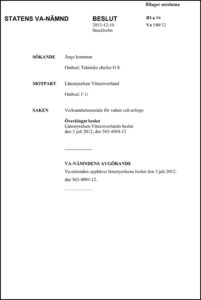 Föreläggande om verksamhetsområde i Alingsås, VA-nämnden 2012