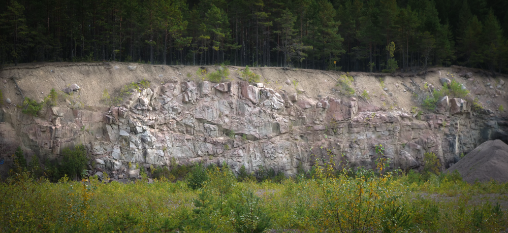 Vid bergtäkten Högstaåsen berättade Bosse om jordlager och visade exempel på sprickbildning.