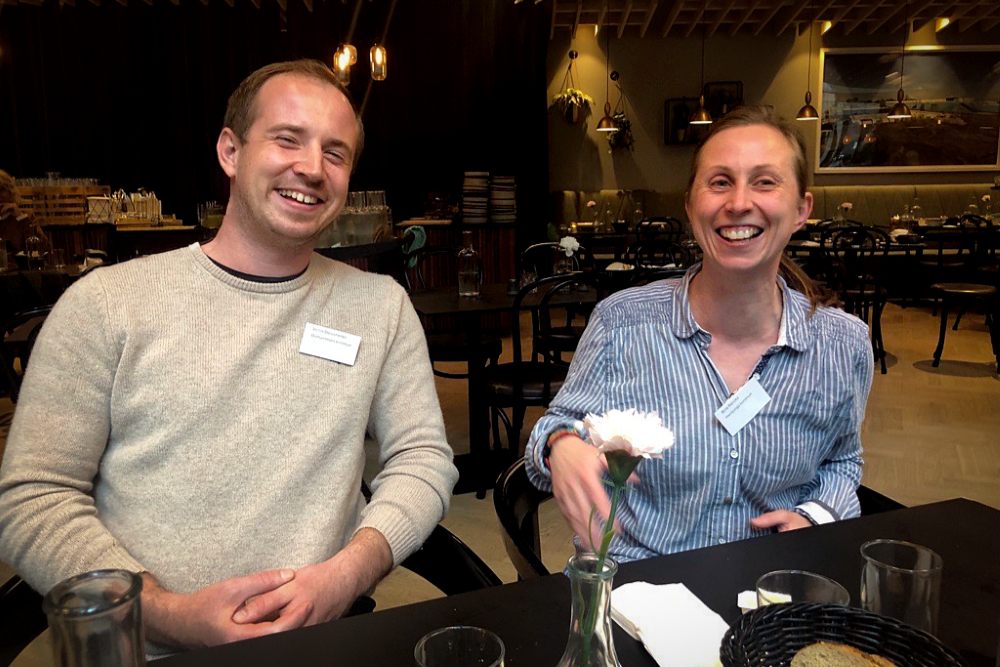 Under lunchpausen hade jag det stora nöjet att samtala med två trevliga och pratglada inspektörer, Victor Doroshenko från Östhammars kommun och Birte Rancka från Herrljunga kommun. Båda gillade den uppdaterade vägledningen från HaV och SGU om skyddsavstånd. Victor sa att han ofta har nytta av den i sin vardag. Birte berättade att de börjat använda den för att själva räkna fram markens k-värde utifrån observationer i provgropar. Birte sade också att de krävt grundvattenrör för att följa upp villkor till äldre infiltrationsanläggningar.