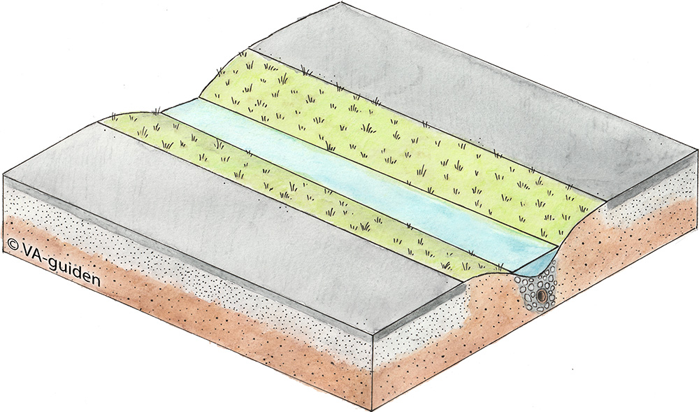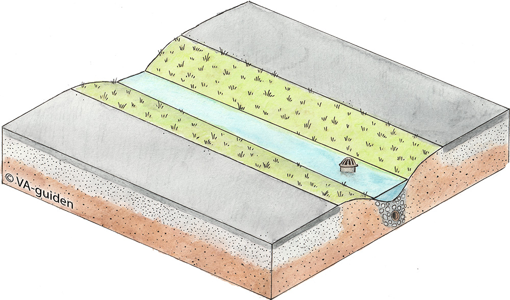 Illustrationer över anläggningen får fritt användas i dagvattenutredningar, rapporter, m.m. så länge du refererar till VA-guiden. Tryck på bilderna för att förstora dem.