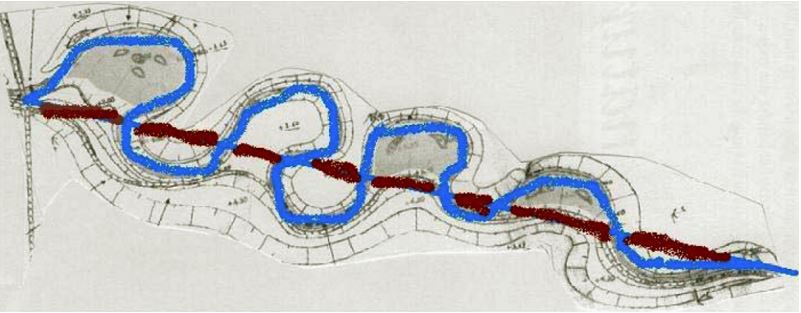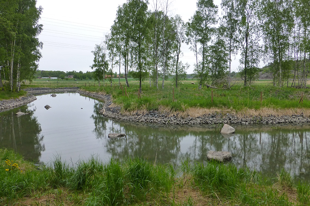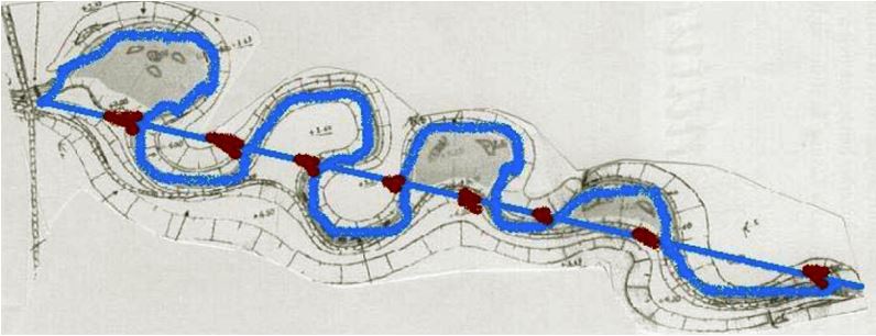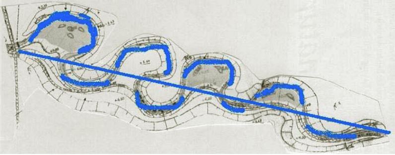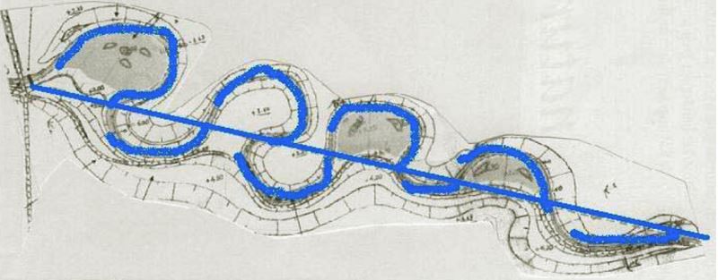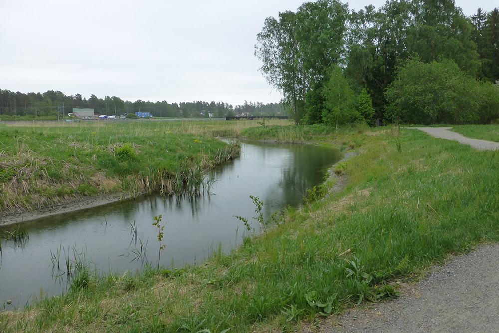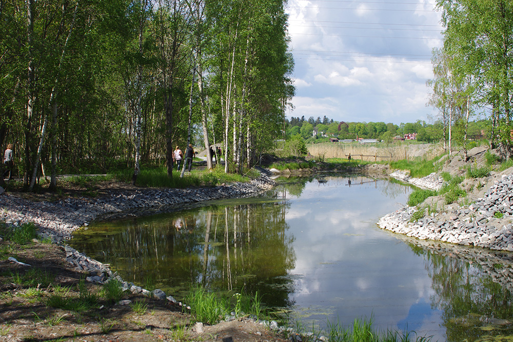 En meandring ökar längden på vattendraget vilket leder till att vattenhastigheten sänks och att partiklar i vattnet därmed sjunka till botten, vilket gynnar reningen av vattnet. För att rena vattnet ytterligare anlades långsträckta norrvända slänter i ett antal av meandringarna där näringsämnen fastläggs.