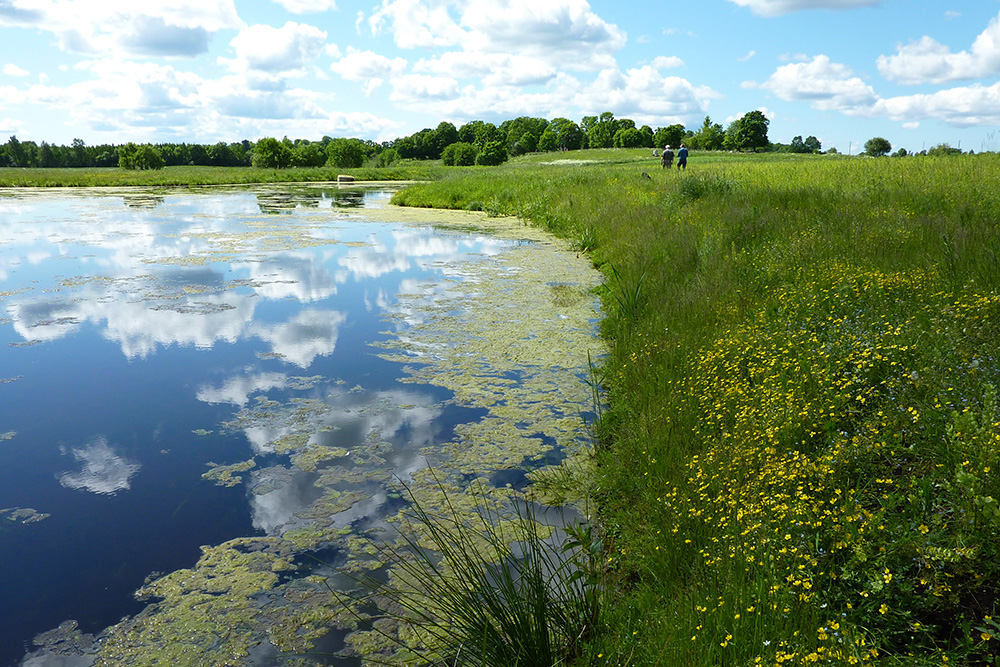 Här rastar stora mängder änder och vadarfåglar under flyttningen söderut. Översvämningsmaden liknar naturliga översvämningsmarker som idag till stor del är bortdikade ur landskapet. Till våren släpps vattnet ut igen och området torrläggs. Här häckar bl.a. enkelbeckasiner och storspoven spelar här varje vår och med en sen slåtter hinner de också få ut ungarna innan vattnet släpps på i juli.