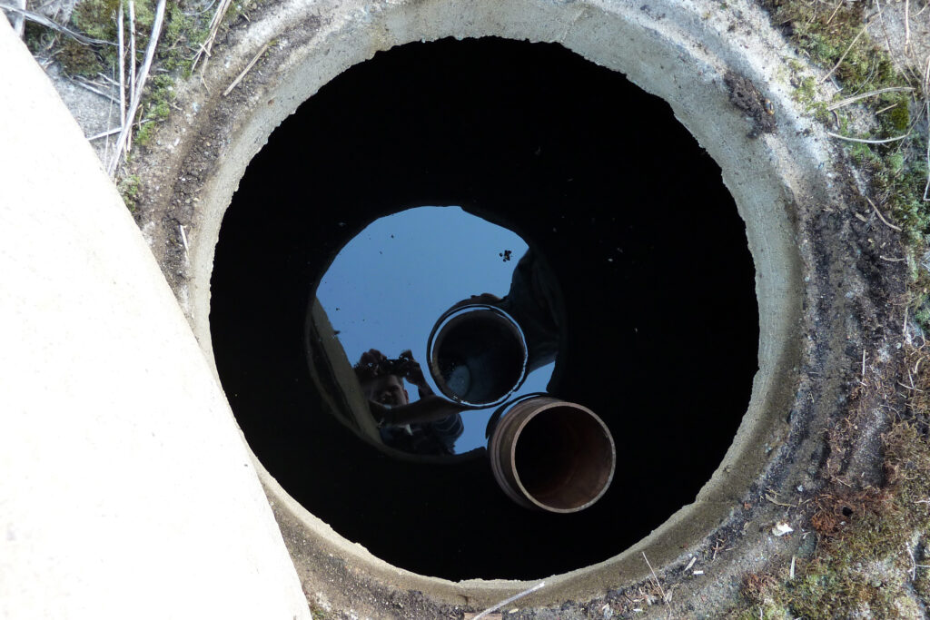 Efter några år fick Åke täta med lera runt utloppsbrunnen. Den organiska jorden som ligger i vallen och vid brunnen höll inte tätt. Brunnen är av betong med betongrör in och plaströr ut. Ett höj- och sänkbart rör inne i brunnen reglerar vattennivån.