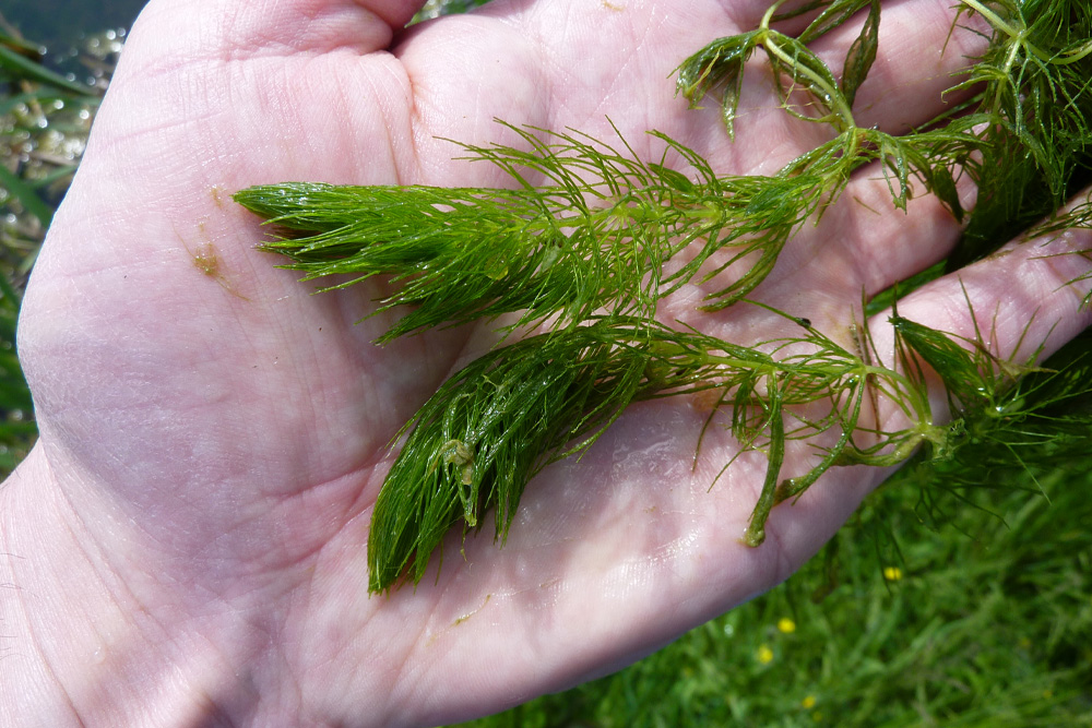 Kornhalm mot alger är ett klassiskt knep och det ska vara just kornhalm, inget annat. I studier som görs fungerar det mot vissa algarter, främst trådalger. Exakt hur halmen verkar vet ingen men effekten är i första hand tillväxthämmande, ej direkt dödande för algerna. Det ska vara halm som börjat brytas ner, därför är det viktigt att få i halmen i vattnet några veckor innan själva algblomningen tagit fart så att nedbrytningen hinner börja. Halmen ska förmultna, inte ruttna, vilket kräver syrerika miljöer. Vid nedbrytningen frigörs ligninet som i det syrerika vattnet bildar humussyror. Solinstrålningen ombildar dessa till väteperoxid som är skadligt för algernas celldelning.