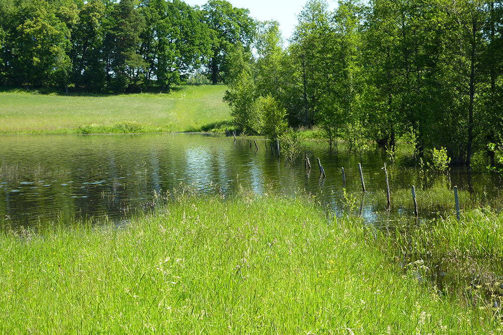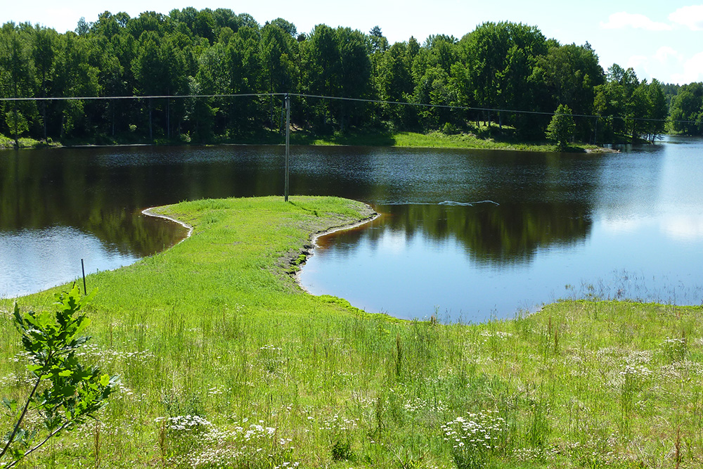 – Samtidigt var det här det givna stället för en våtmark på gården, säger Malin. Här har man en naturlig sänka som omges av trädbeklädda höjder, vall och betesmark. Det här gör att våtmarken smälter in väldigt fint i landskapet.